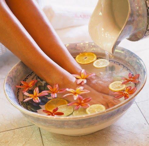 SOAK IN DEAD SEA SALT CALLUS TREATMENT FOOT BUFFING W/ GREEN TEA ICE SCRUB SKIN TREATMENT W/ TANGERINE SUGAR SCRUB FOOT MASQUE W/ WARM TOWEL WRAP MASSAGE W/ BODY CREAM LAQUER OF YOUR CHOICE